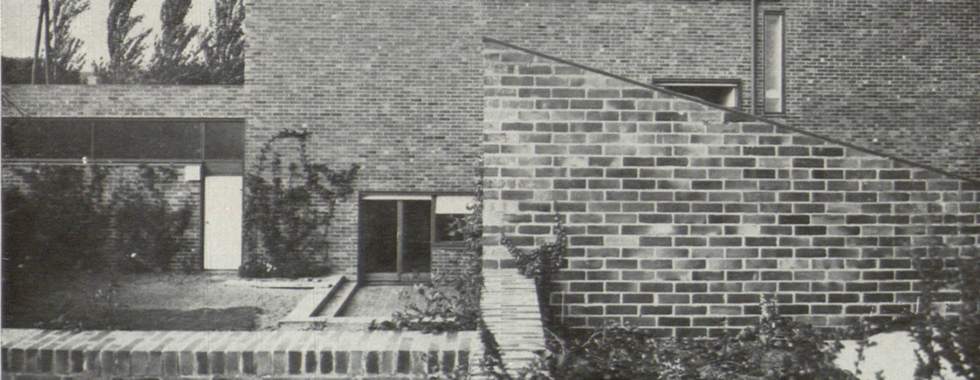 Lo difícil es que una teja plana se ligue de manera limpia con el ladrillo. La carpintería es de madera de cedro. En aquella época se usaba un sistema que tampoco podemos dejar de lado, la ventana Pearson inglesa, una ventana en la cual no había hoja, había un cerco con ranuras y la luna corría limpiamente sobre la ranura de madera con unos tubitos de desagüe. De esta forma queda una carpintería muy limpia. Hoy en día no admiten una carpintería sin hoja, es decir, con ranuras sobre el acero. El patio familiar tenía una piscina-pilón que la pintamos de malva oscuro; tenía un toque peculiar con el ladrillo, pero a la hora de bañarse, daba la sensación de meterse en un agua oscura, lo cual no era habitual. El sistema de cubiertas es muy popular, como una casa de pueblo, a un agua todo, con unas piezas de chapa que rematan muy limpiamente el edificio. Se parece a una zona de un pueblo de cubiertas libres. No parece que esté organizado. El porche de entrada también tiene un remate de chapa. Todo este juego de remates es muy importante.